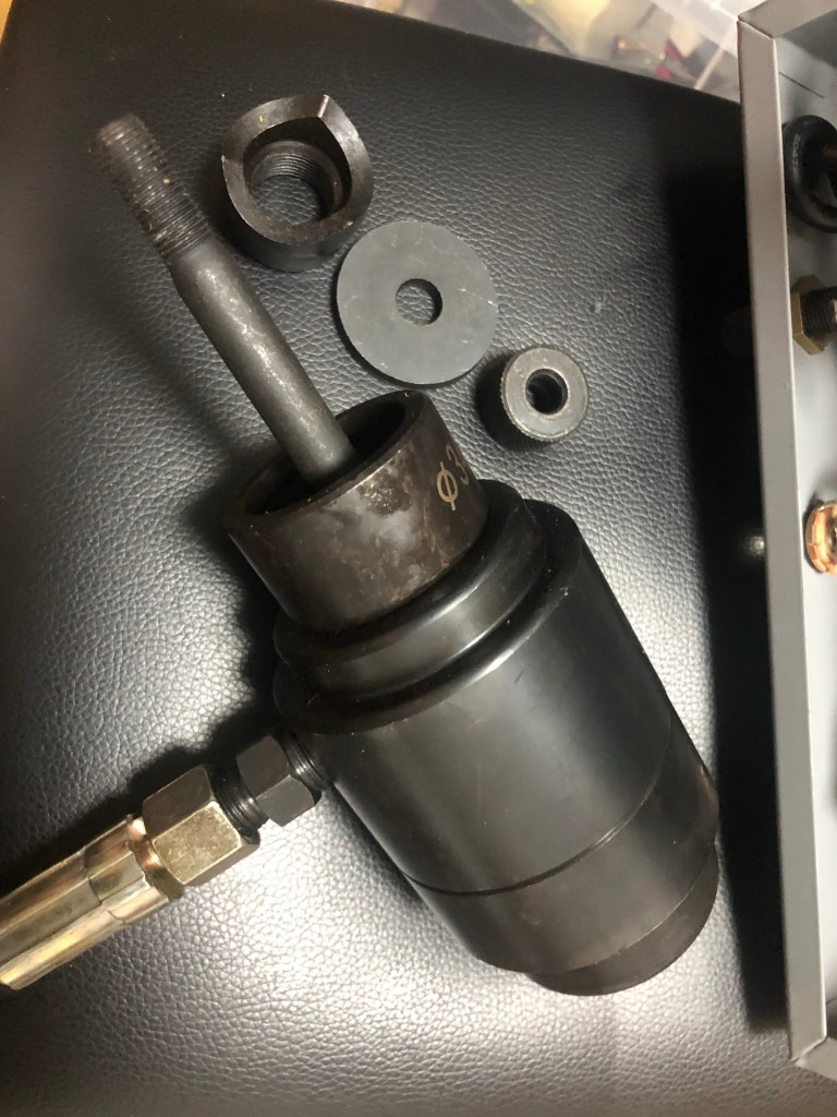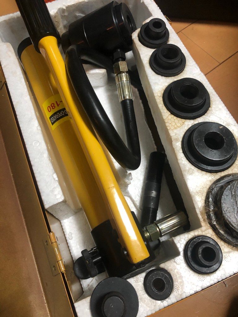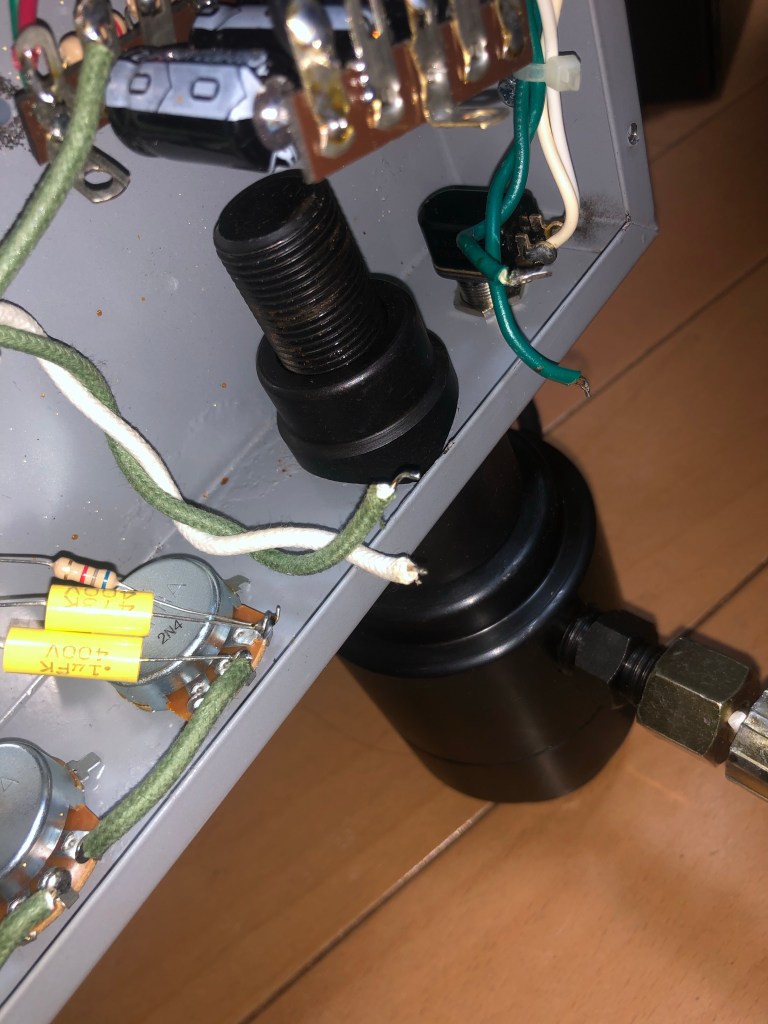 真空管アンプを改造する 投稿者:Hidehiro Tsubakihara2020年4月18日2020年4月18日カテゴリー:未分類 パイロットランプの所がスペースがあるので… VUメーターを付ける。このランプがパイロットランプの代わり 鉄のシャーシにVUメーターが入る穴をあける。バンドドリルとヤスリでは堪ったものではないので、この工具を使う。 油圧シャーシパンチ、ダイスをVUメーターの寸法に合わせチョイス ダイスを組み付け、油圧をかける。 バリが酷いですが、穴あけ所要時間、1分で 取り付けイメージ。中々良い感じ。 共有: X で共有 (新しいウィンドウで開きます) X Facebook で共有 (新しいウィンドウで開きます) Facebook いいね 読み込み中… 関連