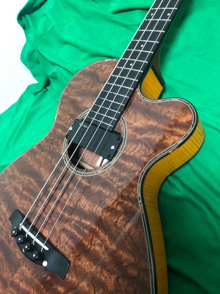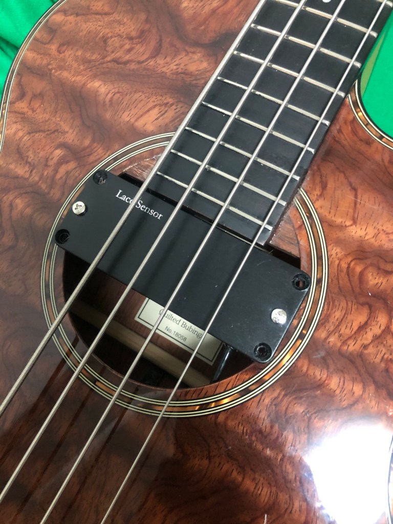 crewsのアコベを24F化する。その2 投稿者:Hidehiro Tsubakihara2020年9月22日カテゴリー:未分類 前回行った改造が、あまり良い出来でなかったので、作り直しした。 元の指板の端がちょうど22Fの位置だったので、フレットが打てず接着フレットだったのを、延長側指板を元指板に食い込ませ22Fから延長指板上のフレットにした。ついでに、lace sensorのピックアップをマウント。 共有: X で共有 (新しいウィンドウで開きます) X Facebook で共有 (新しいウィンドウで開きます) Facebook いいね 読み込み中… 関連
