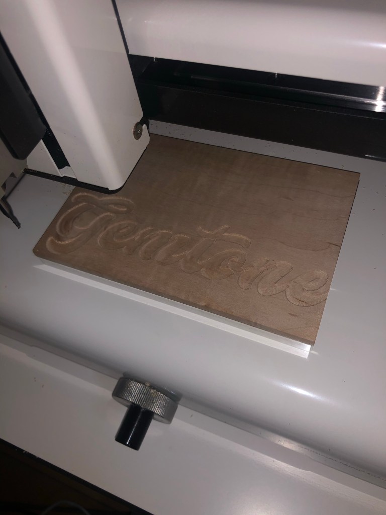 CNCでエンブレムをつくる 投稿者:Hidehiro Tsubakihara2021年2月22日カテゴリー:未分類 彫刻ビットで枠線を書き、2mmのエンドミルで中を掘り込む 使ってないと、操作方法わすれる。まずCut2Dで工具経路を作成すること。 共有: X で共有 (新しいウィンドウで開きます) X Facebook で共有 (新しいウィンドウで開きます) Facebook いいね 読み込み中… 関連