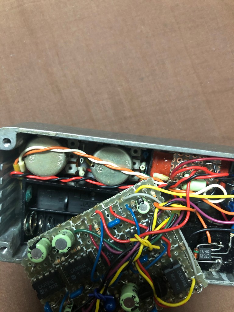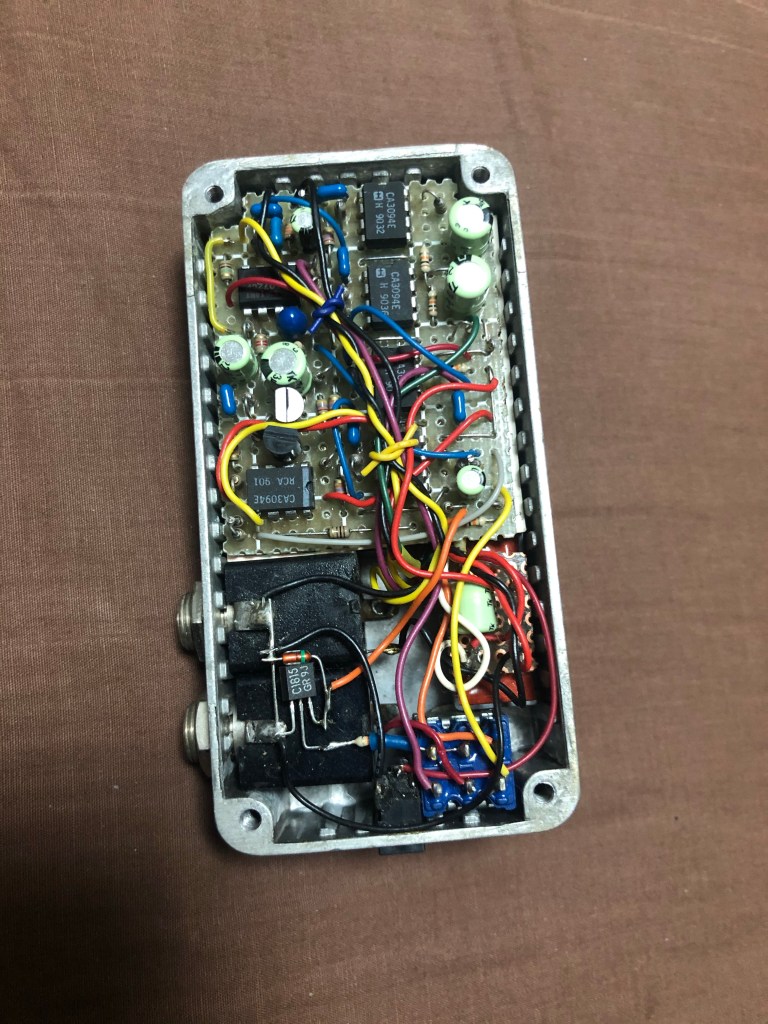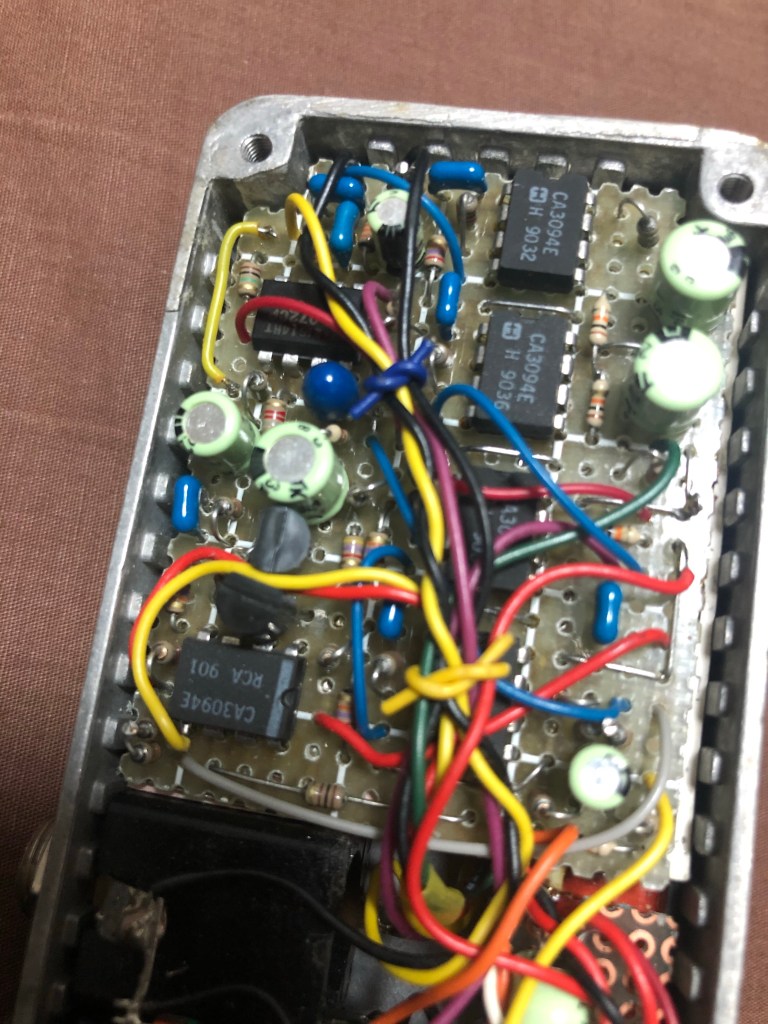 フェイザー(過去作成分) 投稿者:Hidehiro Tsubakihara2021年5月4日カテゴリー:未分類 その昔、1990年ぐらいか…ハモンドのケースがカッコよく、スモールストーンの回路をもとに作ってみたもの。 蛇の目基板を使い、背の低いパーツを多用して作った。タンタル、メタセラなど。CA3094Eを5個使っている。 ジャンパーなどを多用しているので、プリント基板を作るとすると、両面いるかも 006Pが入らなかったので、単4電池を2本使い、DCコンバータで昇圧し駆動している。なのでDCジャックは3Vを使っていた。 共有: X で共有 (新しいウィンドウで開きます) X Facebook で共有 (新しいウィンドウで開きます) Facebook いいね 読み込み中… 関連