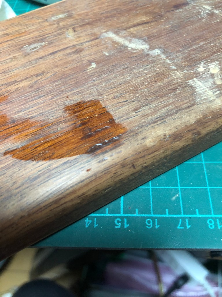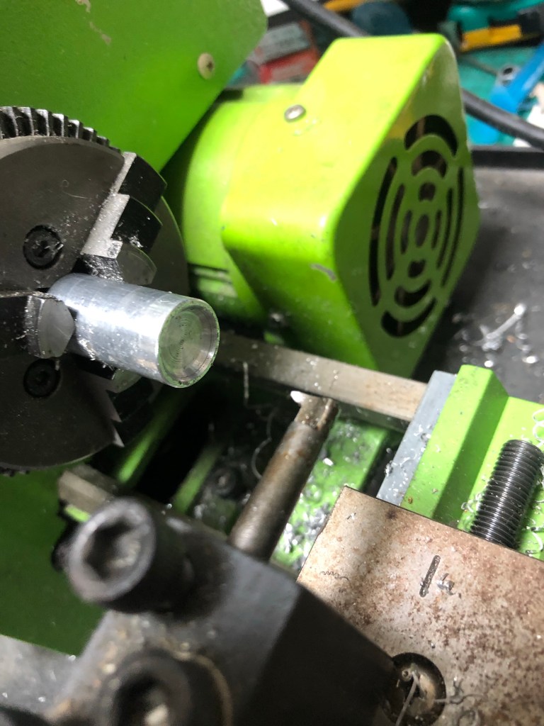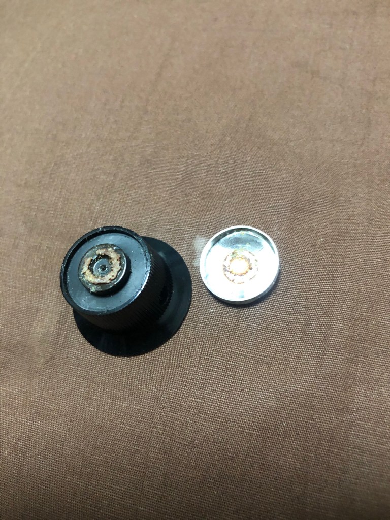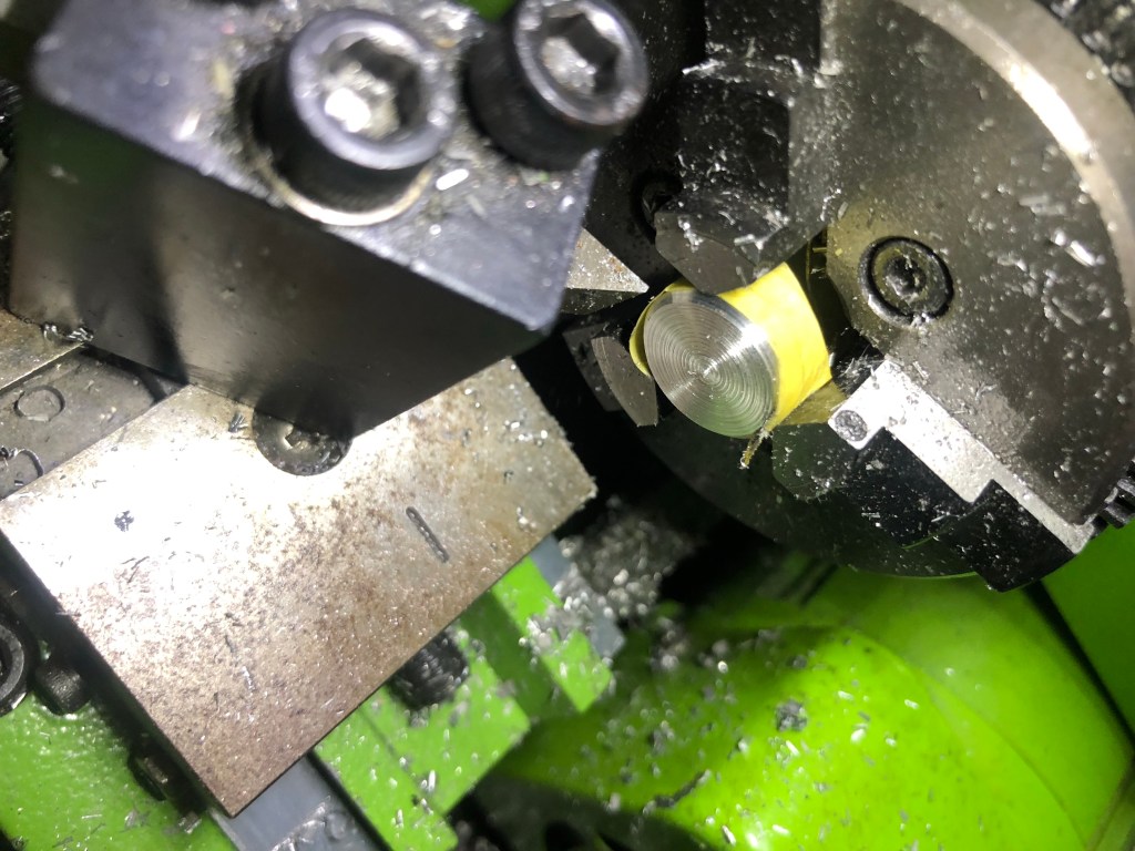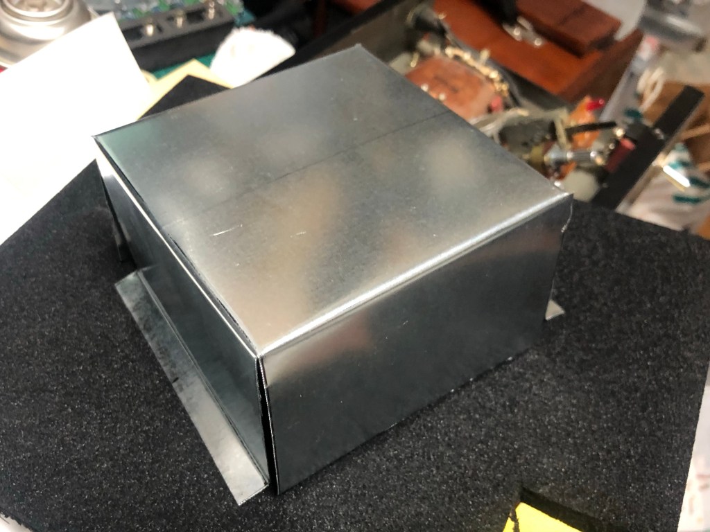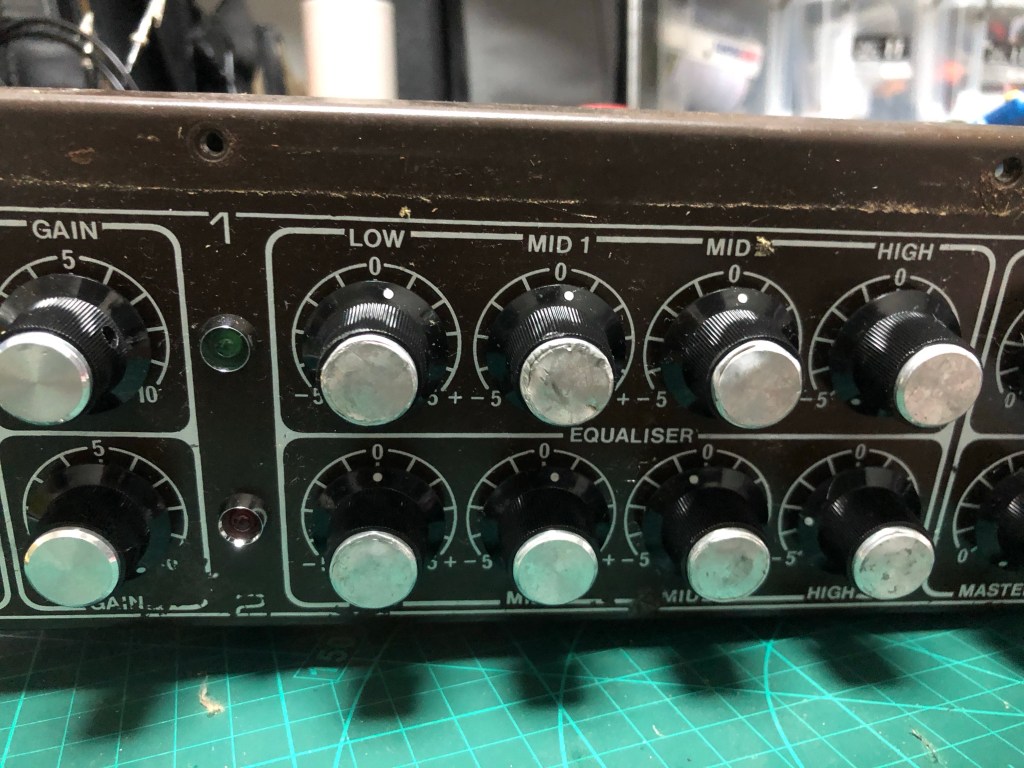 ピーターソン P100Gレストア 投稿者:Hidehiro Tsubakihara2022年7月17日2023年2月3日カテゴリー:未分類 ピーターソンのアンプを入手 キャビネットは傷だらけ、Gainとmasterにガリはあるが、音は出る。リヴァーブも効く エレクトロボイスのロゴもなく、トロイダルトランスが底についてるから、初期型かな。 スピーカー、メーカー不明だが、25cmにしてはマグネットデカい。 スピーカー前面、エッジもそれほど傷んでなく、まあ、このまま使えるでしょう。 修理した形跡なし、いや基板ごと交換してたらと思ったが、ボリュームもオリジナルだし、貴重な初期型なのかもしれぬ。 キャビネットの凹みを直してみる。 濡らした不織布とはんだこてで 凹んでるだけなら、蒸気の力で膨らんでくれる。だけど削れて無くなってるのは無理 ボリュームノブの凹みがひどい。 薄いアルミのキャップのようだ 外すことができるので、叩いて直すか? 旋盤でアルミ棒を削り、キャップを作ることにした。 窪み深さは、2.0mmぐらい要るかな… 左のキャップが旋盤削り出しのもの。右は、当て傷でベコベコになったキャップ。 ちょい高さが高いのが出来てしまったが、まあよしとしよう。 結局、6個作りました。 旋盤を引っ張り出したので、ついでに六角棒を切削 交換予定のボリュームのナットにする。交換部品のボリュームの取り付け軸寸法が元のより細いので、そのまま取り付けると、中心に軸がこない。そのため、短いカラー付きのナットを作成する。 ネジは、7mmの0.75ピッチとちょい特殊。国産のボリュームはこのネジ寸法。 こんなナットをつくる。 四つ作った。 塗装をやり直し、組み付け。ハンドルも変えた。 トランスノイズを拾うのでシールドケースを作った。 ここに被せる。 フットSW無しでリバーブが効くよう、プラグを作った。先端にLEDを付けている。 共有: X で共有 (新しいウィンドウで開きます) X Facebook で共有 (新しいウィンドウで開きます) Facebook いいね 読み込み中… 関連