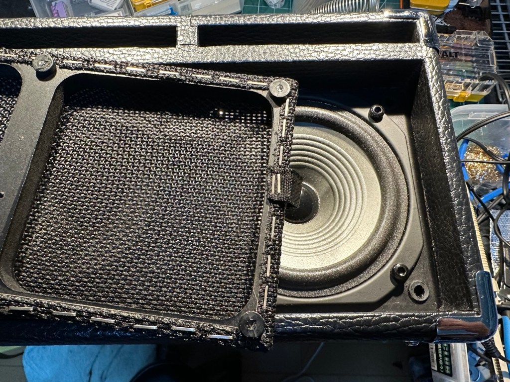 フィル・ジョーンズのスピーカーグリル修理 投稿者:Hidehiro Tsubakihara2025年6月30日カテゴリー:未分類 スピーカーの保護ネットの樹脂製固定ピンが劣化してボロボロになってしまいました ピンが折れた状態 スピーカーのネット固定プッシュピンを探して、買いました。受けは樹脂製ですがピンは金属 こんなふうに取り付けます。穴寸法が違うので少々加工しなくてはなりません 6つ取り付け完了です。 あ、吸音材を入れ忘れてました。やり直しです 共有: X で共有 (新しいウィンドウで開きます) X Facebook で共有 (新しいウィンドウで開きます) Facebook いいね 読み込み中… 関連